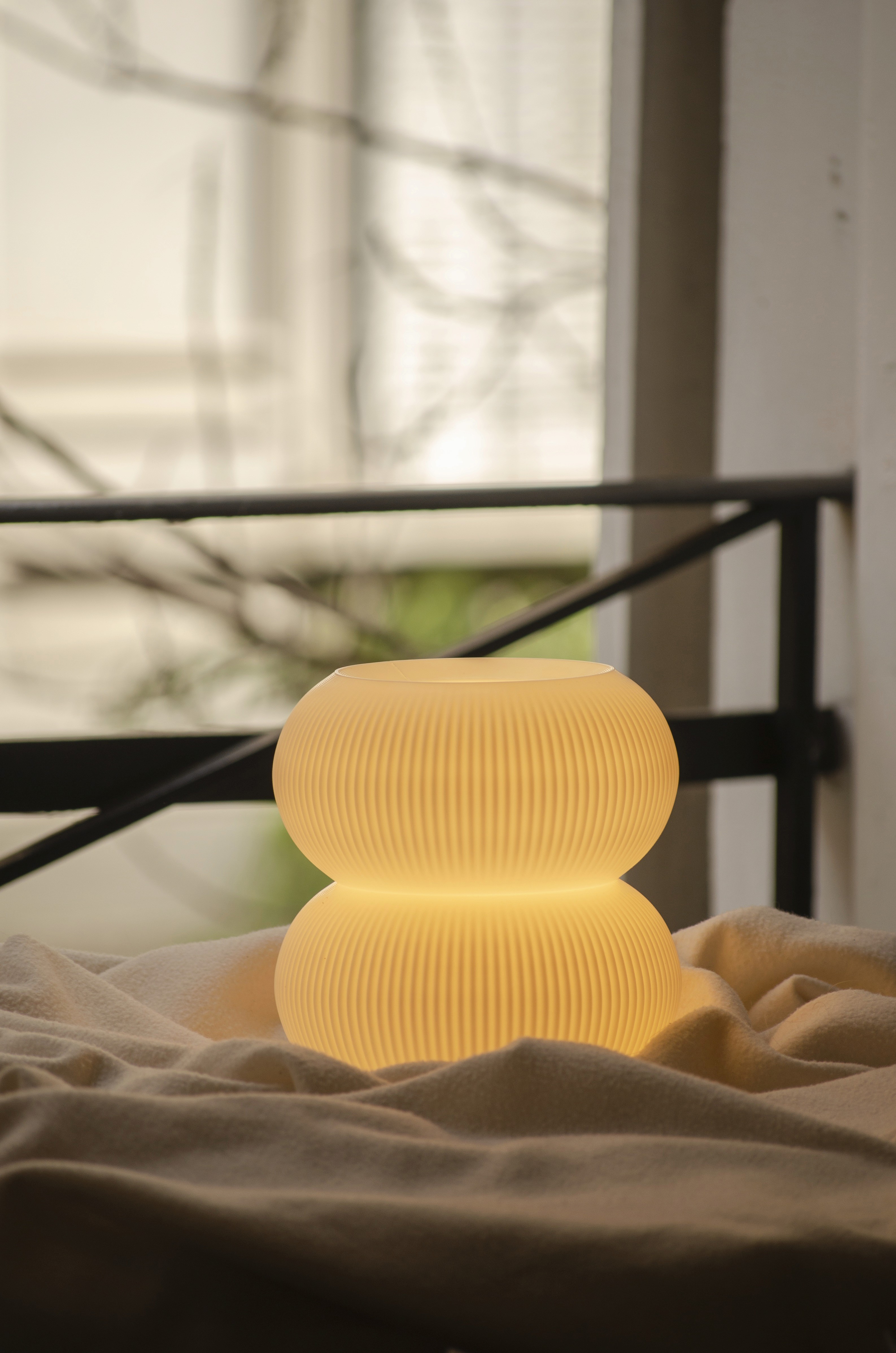 Su nombre proviene de la física cuántica. Un orbital describe la zona donde es más probable encontrar un electrón. No se trata de una órbita clásica (una trayectoria cerrada), sino de una forma suspendida, un patrón de probabilidad de presencia, que se expande y se contrae, dejando entre sí regiones llamadas nodos, donde la materia parece desaparecer. El modelo Orbital traduce esa idea invisible en un objeto tangible. Su cuerpo se organiza en torno a un vacío central, como si ese espacio fuese el núcleo donde la energía se concentra en silencio. A su alrededor, anillos y pliegues se expanden siguiendo un ritmo ondulante, insinuando distintas capas de densidad. Una estructura nacida del cálculo, pero pensada para habitar. Orbital es, al mismo tiempo, un fenómeno detenido y una geometría en reposo.